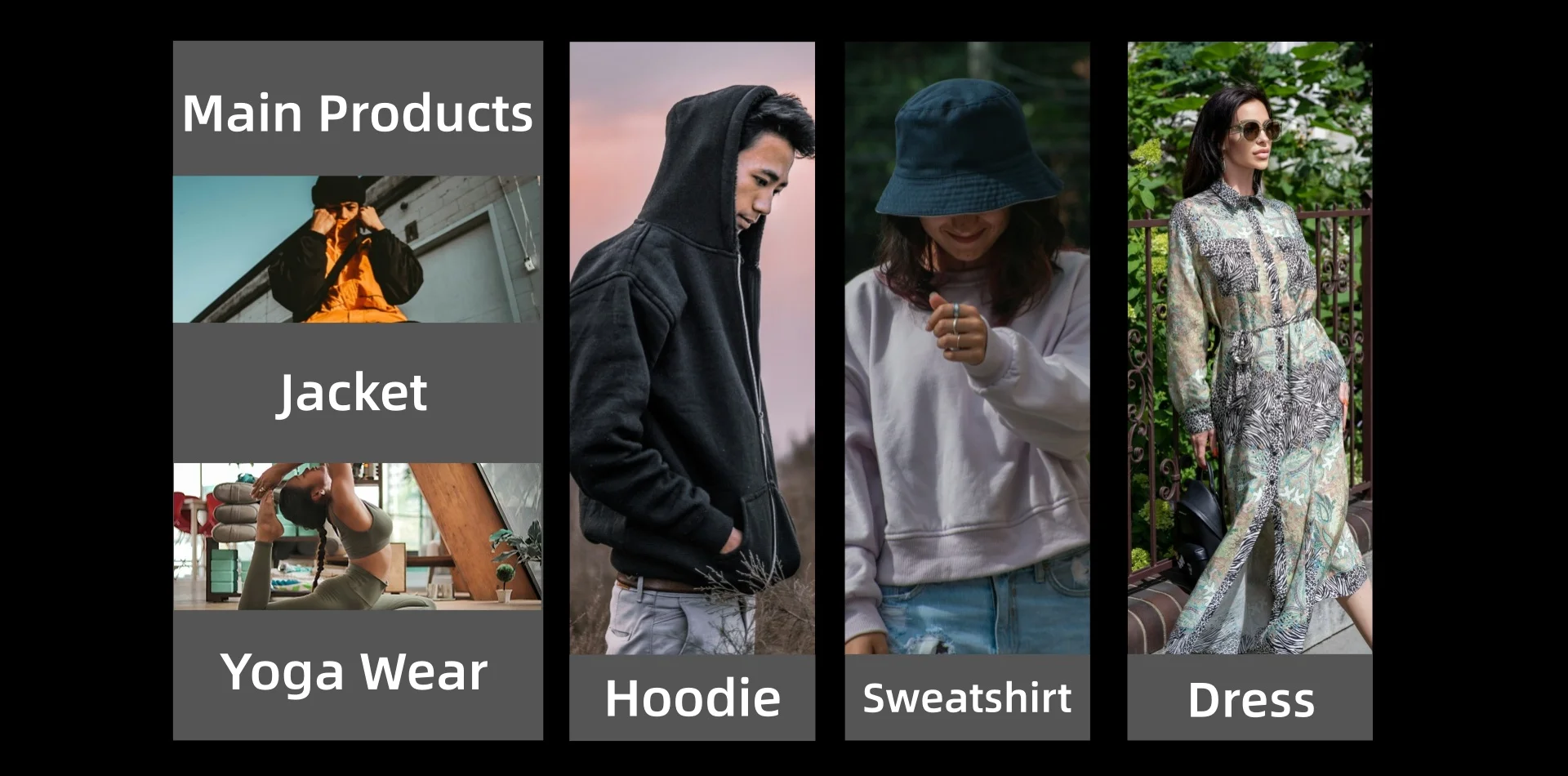Prodotti principali: Abbigliamento maschile, abbigliamento femminile, abbigliamento sportivo, uniformi e costumi, abbigliamento per bambini